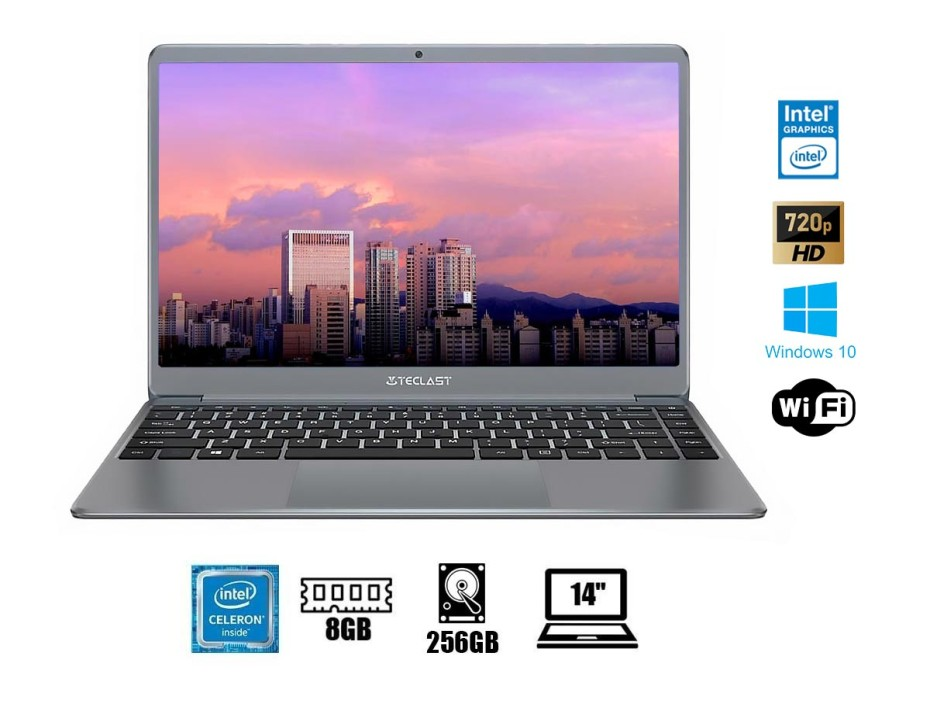 LAPTOP TECLAST CELERON N4120 F7 PLUS II, PANTALLA 14 PULGADAS HD, RAM 8GB, DISCO SOLIDO HDD 256GB, WINDOWS 10 HOME (6940709683354)