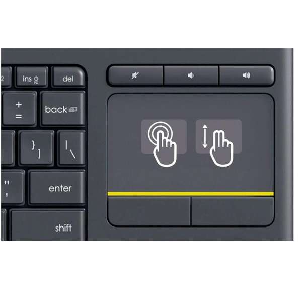 El touchpad integrado te permite escribir y navegar con un mismo dispositivo. Con tu TV controlada desde la PC, el K400 facilita la navegación,